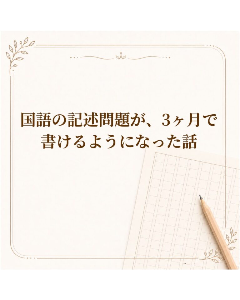 記述問題が白紙になってしまう、書いても点が取れない——。 そのようなご相談を毎年いただきます。 特に中学受験を控えた小学6年生の生徒さんは、記述問題の得点に伸び悩み、焦りを感じている方も多いかもしれません。 今回は、3ヶ月で記述問題の得点が伸びた生徒さんの取り組みをご紹介します。 以前、Tくんという小学5年生の男の子がいました。 夏休みに、「長文読解で苦労している」と当塾にいらっしゃったのです。 […]